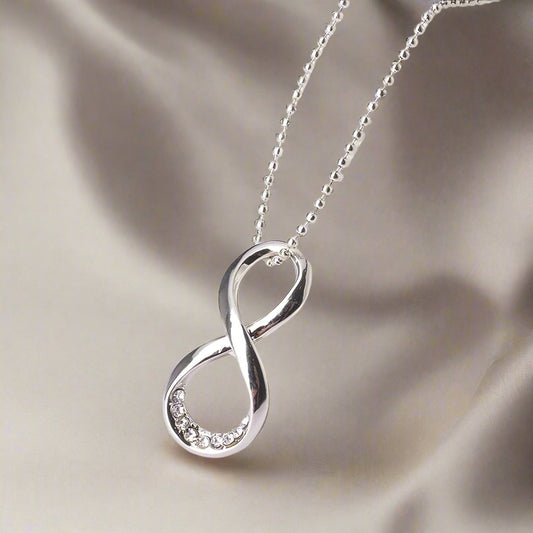 14K White Gold Plated Infinity Pendant Necklace | CZ Stone Jewelry for Women