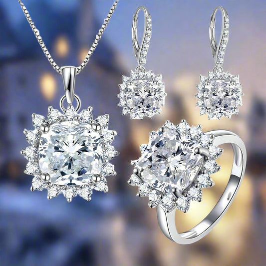 Duchess 4CT Cushion Cut Floral Halo OB Simulated Diamond Earrings for Women Bridal Engagement Wedding Anniversary Gift