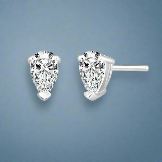 Delicata D'ora Pear Shape .35CT OB Simulated Diamond Solitaire Stud Earrings for Women Bridal Engagement Wedding Anniversary Gift