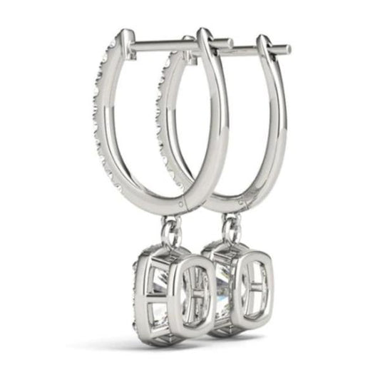 Dulcie .50CT Cushion Cut Halo OB Simulated Diamond Earrings for Women Bridal Engagement Wedding Anniversary Gift