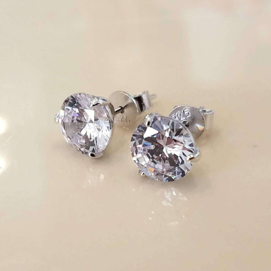 Elite Round Three-Prong Sterling Silver Stud Earrings with OB Simulated Diamonds – Bridal, Engagement & Anniversary