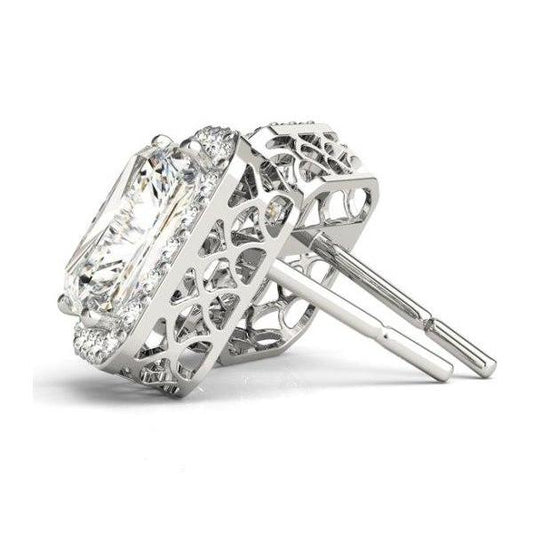 Dominique 3CT Radiant Halo OB Simulated Diamond Stud Earrings for Women Bridal Engagement Wedding Anniversary Gift