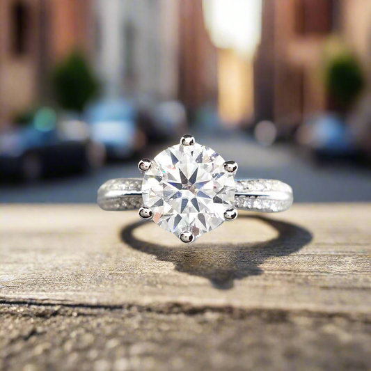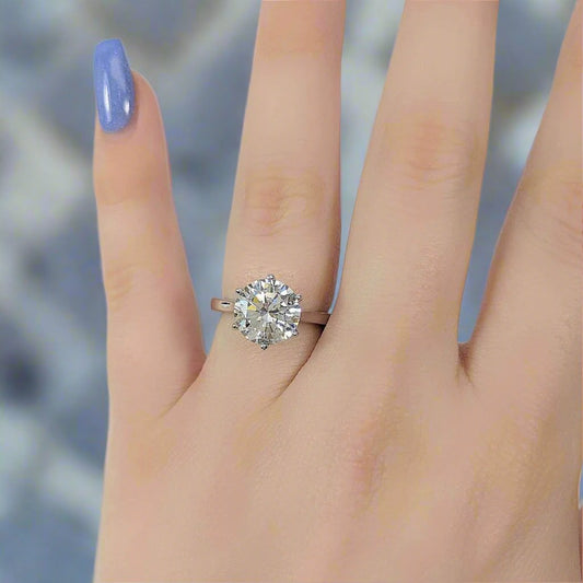 Victoria 4CT Round Cut OB Simulated Diamond Solitaire Sterling Silver Platinum Plated Ring for Woman Special Occasion Engagement