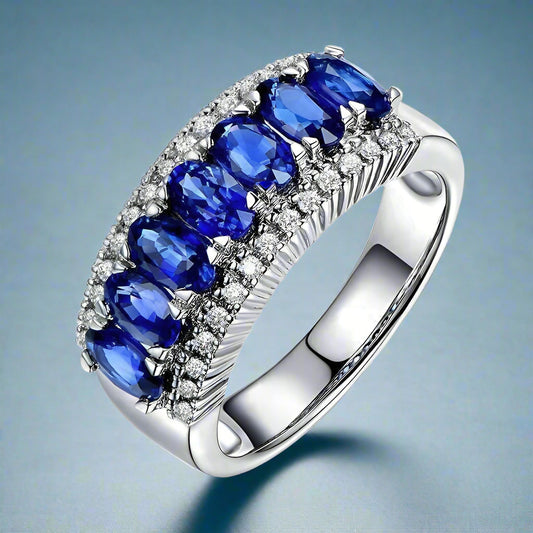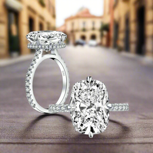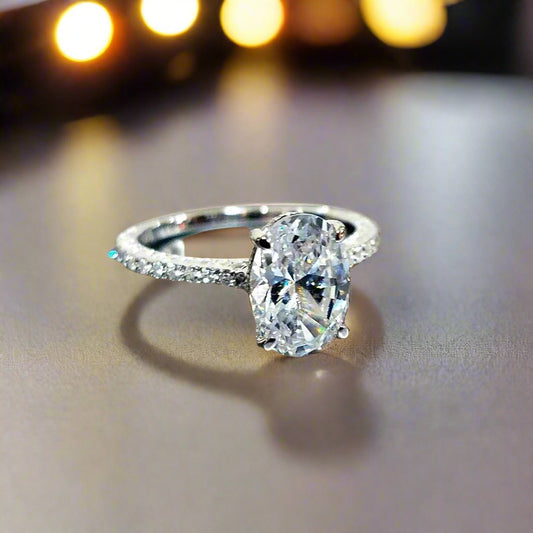 Charlaine En Bleu 3.5CTW Oval and Pavé Band OB Simulated Diamond Ring for Women Bridal Engagement Wedding Anniversary Gift
