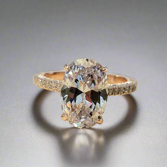 Alexandra LaRosa 3CT Oval Petite French Pavé Crown OB Simulated Diamond Ring for Women Bridal Engagement Wedding Anniversary Gift