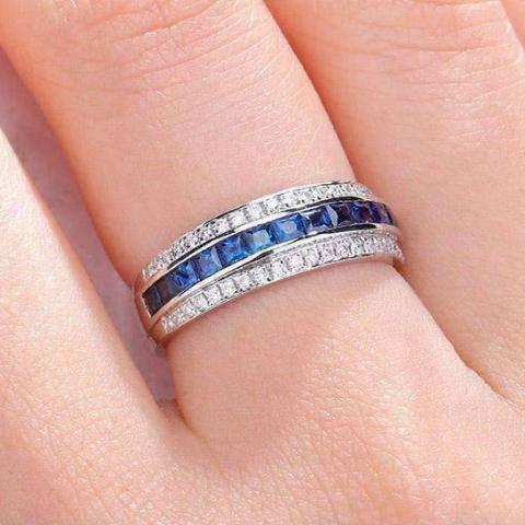 Dyanah En Bleu 1.32CTW Channel Set Princess and Pavé Band OB Simulated Diamond Ring for Women Bridal Engagement Wedding Anniversary Gift