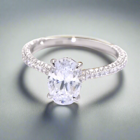 Alexandra 2CT Oval Petite French Pavé Crown Ring for Women with OB Simulated Diamond Bridal Engagement Wedding Anniversary Gift