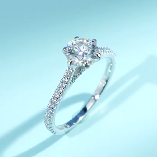 14K White Gold Over 925 Sterling Silver 1Ct Certified Real Moissanite Round Brilliant Cut for Women Super Fiery Perfect for Engagment Wedding Anniversary Promise Ring