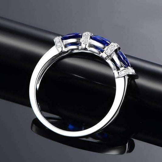 Josette En Bleu 1.5CTW Oval Three Stone Band OB Simulated Diamond Ring for Women Bridal Engagement Wedding Anniversary Gift