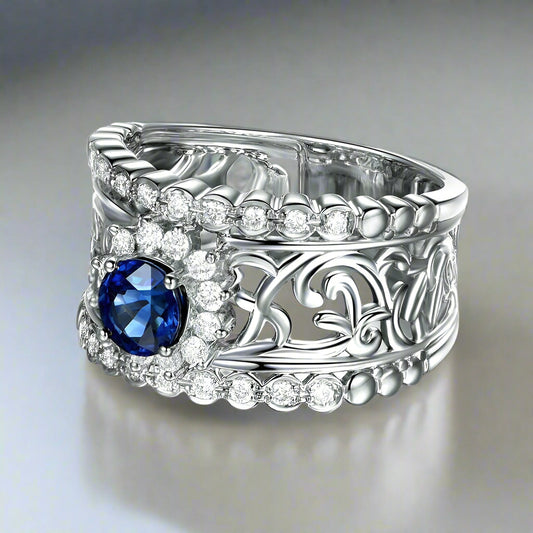 Léonie En Bleu .80CT Filigree Band OB Simulated Diamond Ring for Women Bridal Engagement Wedding Anniversary Gift