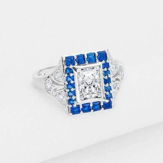 Eliza En Bleu 1CT Emerald Cut Vintage Era OB Simulated Diamond Ring for Women Bridal Engagement Wedding Anniversary Gift