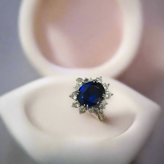 Coralie En Bleu 4CT Oval Floral Halo OB Simulated Diamond Ring for Women Bridal Engagement Wedding Anniversary Gift