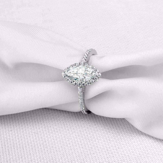 Arabella 1CT Marquise Cut Halo OB Simulated Diamond On Platinum Plated Sterling Silver Ring for Women Special Occasion Bridal Engagement Wedding Anniversary Gift
