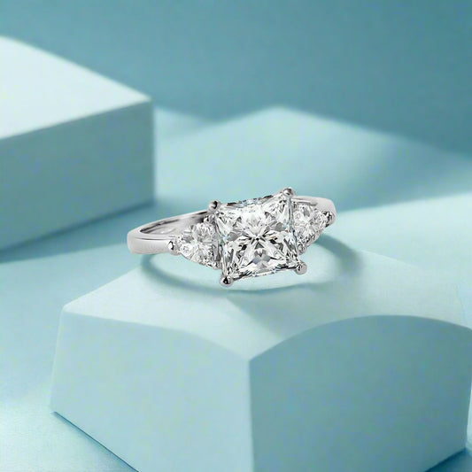 Barcelona 14K White Gold Over Sterling Silver 9.5 Ct Princess Cut Cz for Women Special Occasion Wedding Engagement Ring