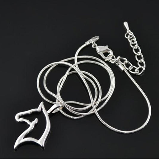 Horse Silhouette Silver Graceful Necklace Pendant on Snake Chain for Woman