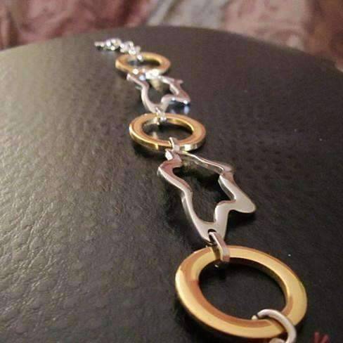 Butterfly Hearts Two Tone Stainless Steel Bracelet