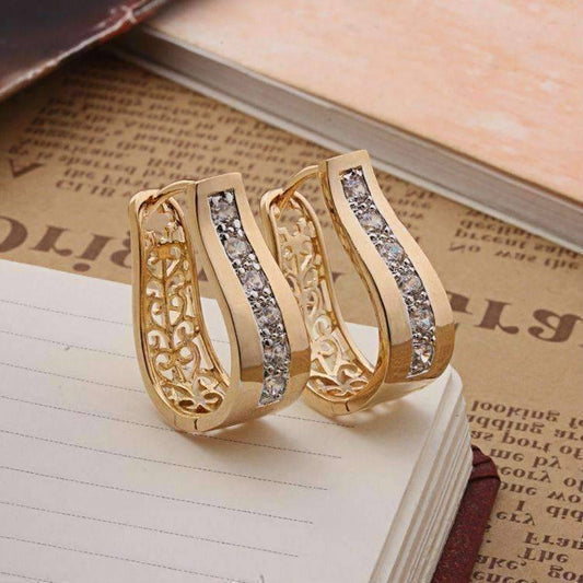 18K Gold Plated Crystal Diamond 2-in-1 Filigree Hoop Earrings – Elegant & Versatile