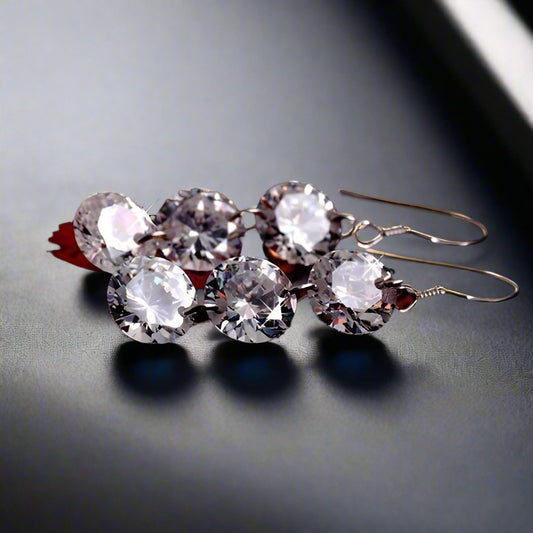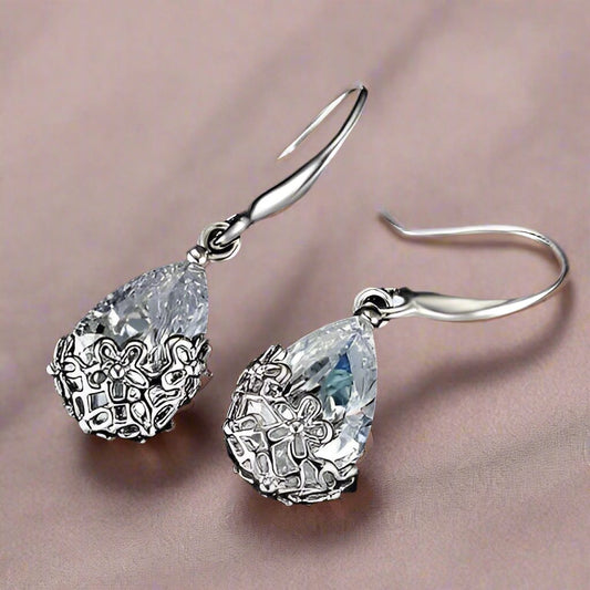 OB Crystals 14K White Gold plated Dew Drop Earrings for Woman Special Occasion Black Tie Holidays Birthdays