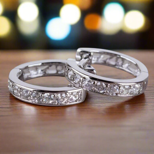 18K Gold Plated Channel Set Sparkly CZ Diamond Petite Hoop Earrings for Woman