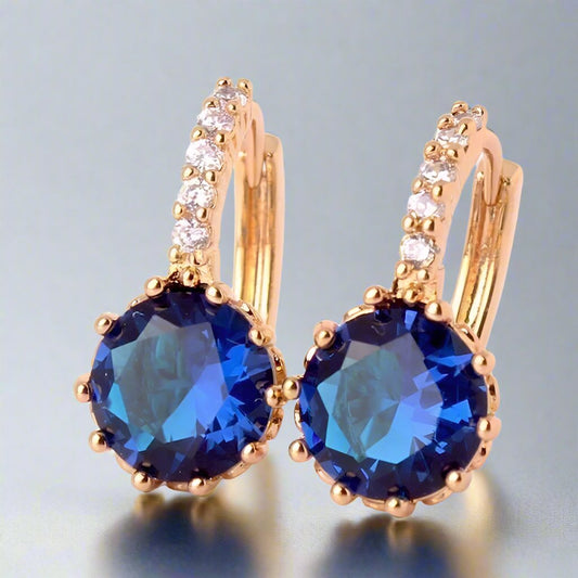 18K White Gold Plated Sapphire Blue CZ Solitaire White Or Yellow Gold Hoop Earrings for Woman Special Occasions Gift