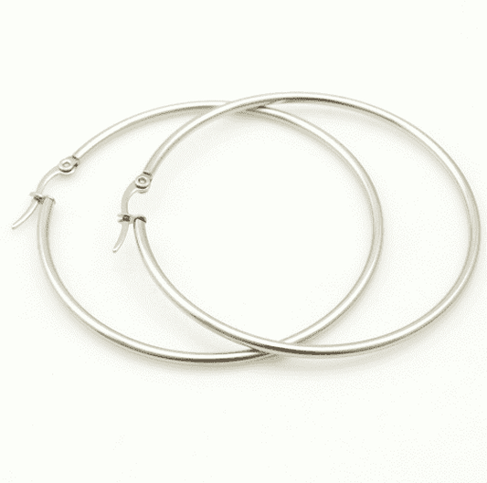 Tubular Polished Stainless Steel Classic Hoop Earrings Available in Four Sizes