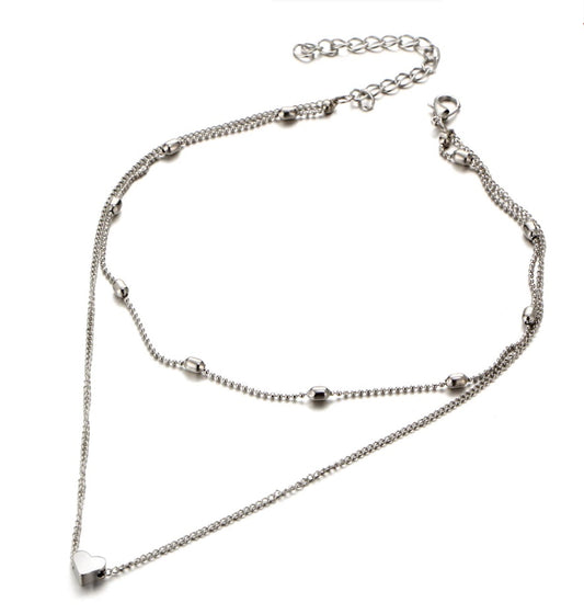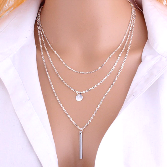 Delicately Layered White Gold Bead Three Chain Necklace for Woman