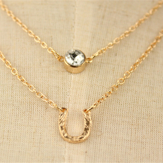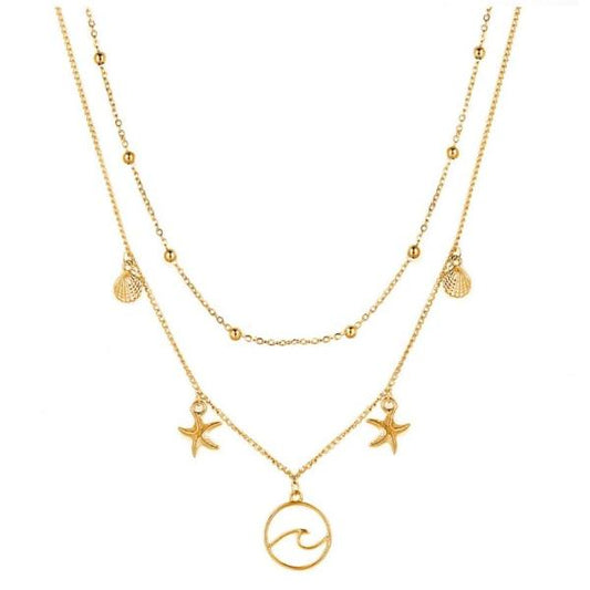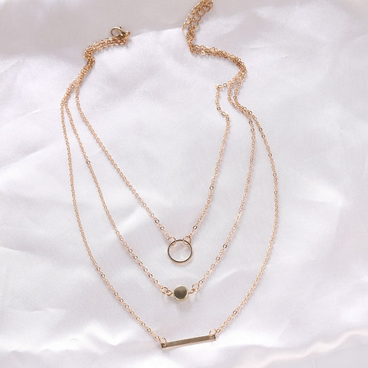 14K Gold Plated Circle Bead Bar Layered Chain Necklace For Woman