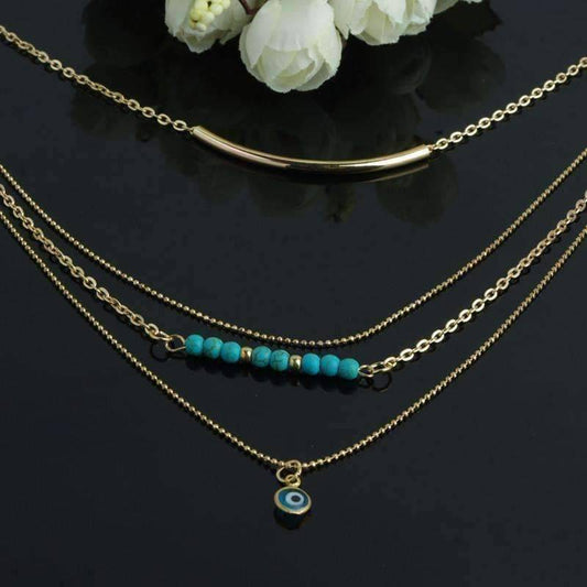 Turquoise Bead Double Layer Necklace for Woman Everyday Modern Wear