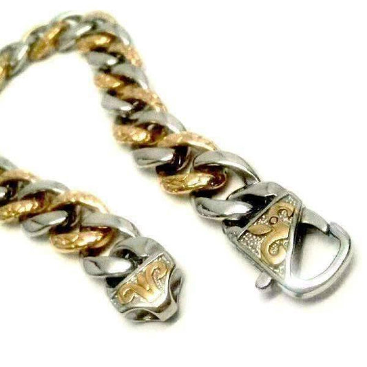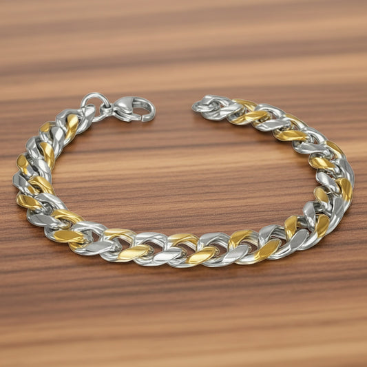 Two Tone Flat Cuban Link Stainless Steel Men's Bracelet