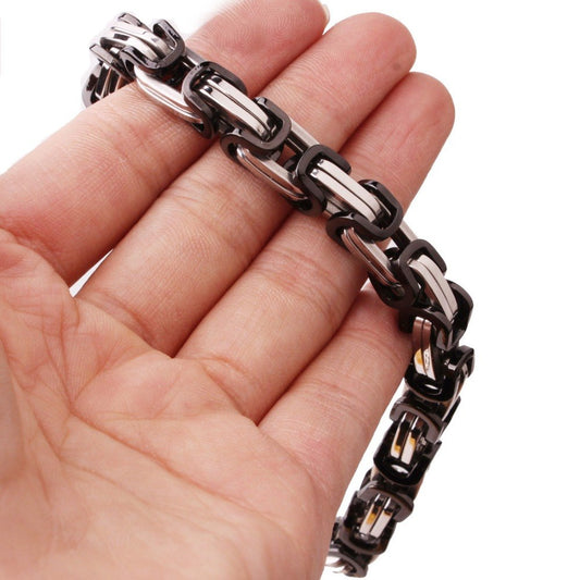 Black & Stainless Steel Byzantine Box Link Men's Bracelet