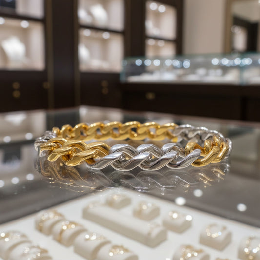 Havana Two Tone Stainless Steel Thick Cuban Link Men's Bracelet