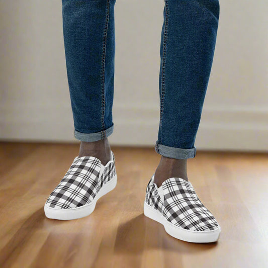 COM4T Gray Plad Men’s Slip-On Canvas Fashion Shoes by OB Original Apparel