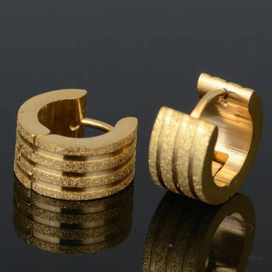 Brushed Stripes Gold Huggie Hoop Stainless Steel Earrings - For Men or Women