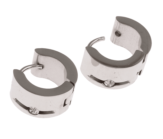 CZ in Stainless Steel Huggie Hoop Earrings - For Men or Women