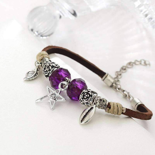 Purple Swirl Glass Bead and Stars Charm Bracelet in Silver for Women