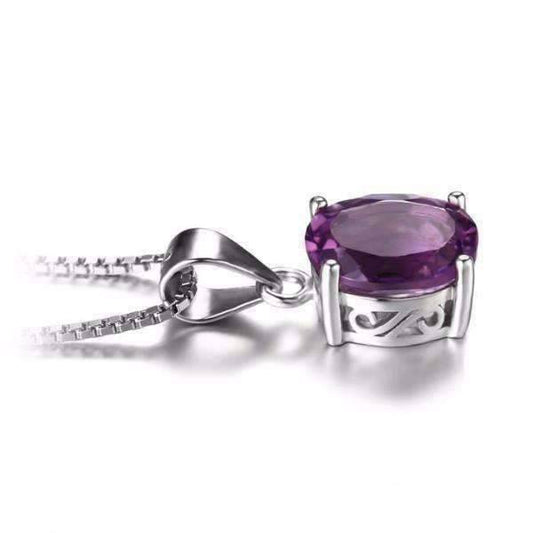 Amethyst Oval Cut 1.7CT IOBI 925 Sterling Silver Pendant Necklace