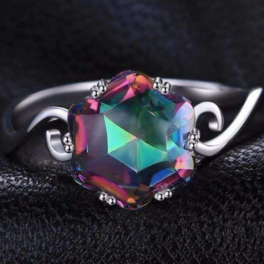 Rainbow Fire Genuine Mystic Topaz Heart Cut 2.6CT IOBI Precious Gems Solitaire Ring