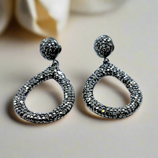 Boutique Black Turkish Crystal Encrusted Drop Earrings