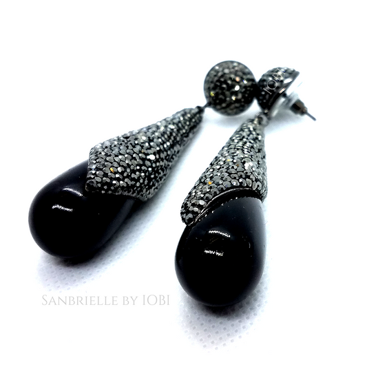 Draped Black Turkish Crystal Raindrop Earrings for Women