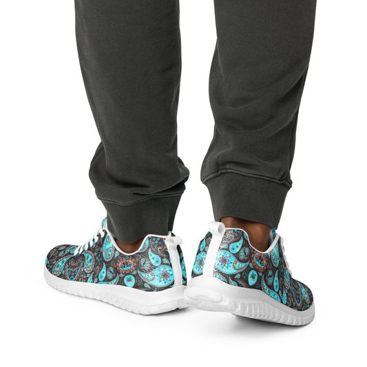 DASH Paisley Black Aqua Men’s Athletic Shoes Lightweight Breathable Design by IOBI Original Apparel