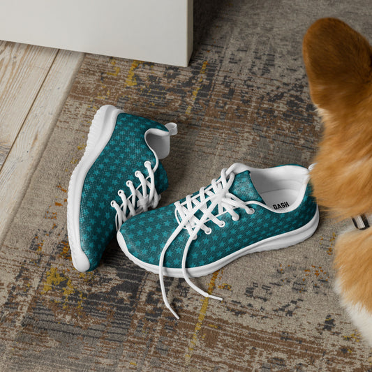 DASH Geo Mosaic Aqua Men’s Athletic Shoes Lightweight Breathable Design by IOBI Original Apparel