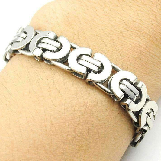 Alpha 11mm Flat Byzantine Link 18K Gold Plated or Stainless Steel Bracelet