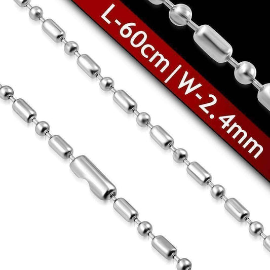 24 inch Stainless Steel Bead and Bar Chain Necklace