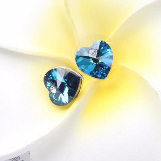 Aquamarine Austrian Crystal Heart Stud Earrings For Woman