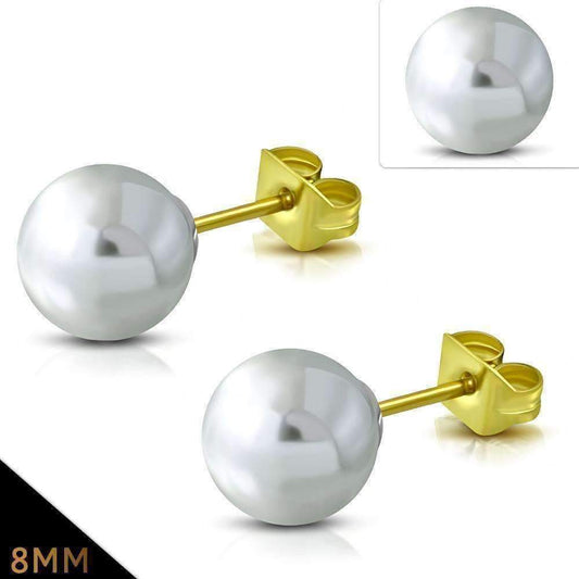 Snowy White Pearl Bead Solitaire 18K Gold plated Stainless Steel 316 Stud Earrings for Woman Everyday Wear Special Occasion