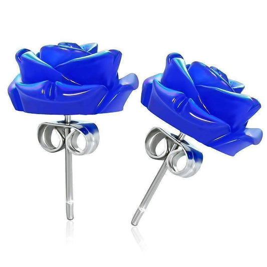 Light Blue Rose Stud Stainless Steel 316 Earrings For Woman