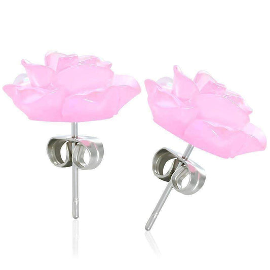 Large Shimmering Blushing Pink Rose 316 Stainless Steel Stud Earrings for Women