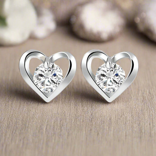 Forever OB in My Heart Sparkly CZ Stud Earrings ~ White or Rose Gold Plated for Women