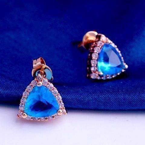 Aqua Trillion Halo Zirconia Stud Earrings in 18K Rose Gold Plating
