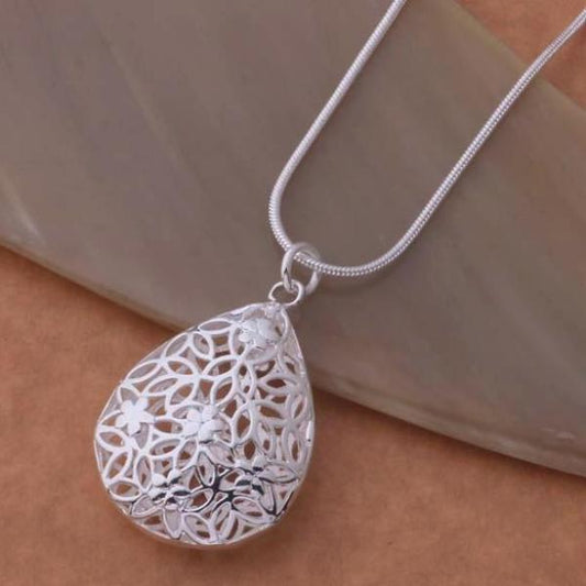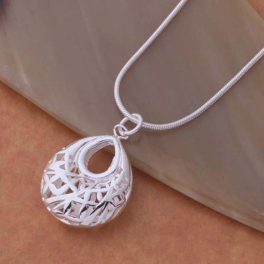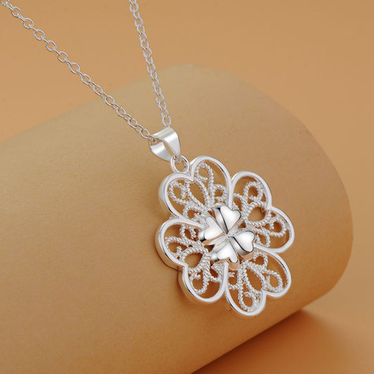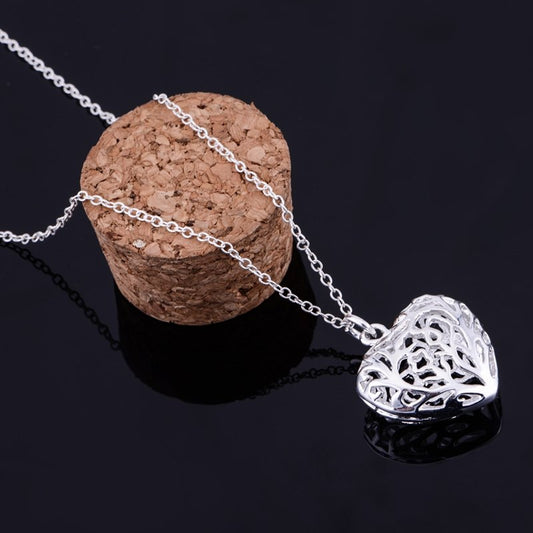 Cut Out Fancy Puffed Heart Silver Necklace For Woman